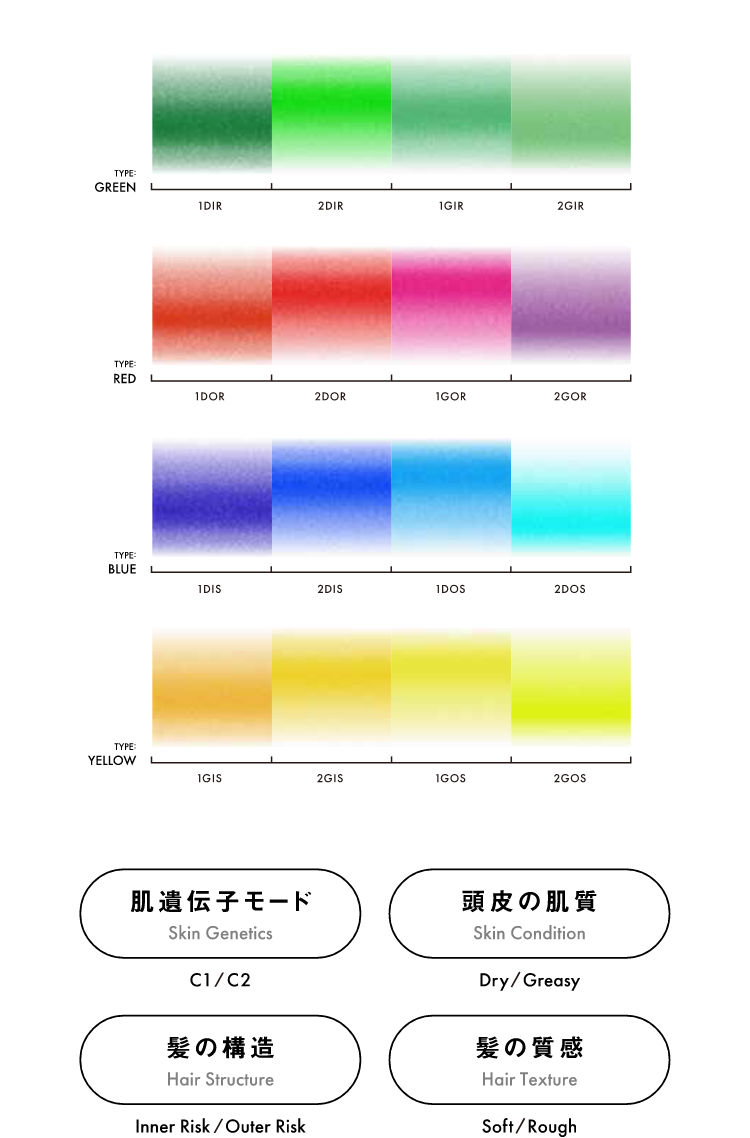 あなたの頭皮や髪の特性を16タイプに分類。